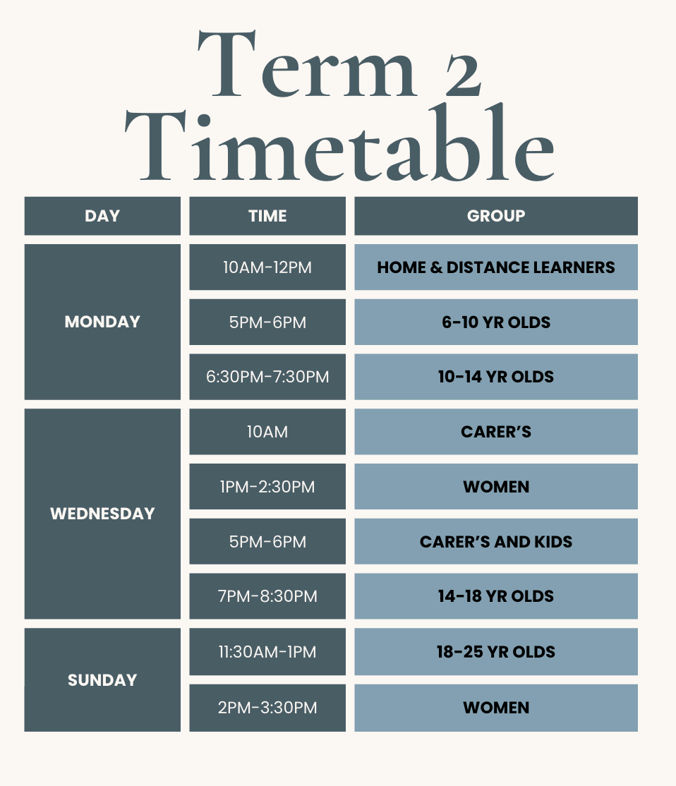 Our weekly timetable includes groups for home and distance learners, children, teens, young adults, carers, and women. Each session uses simple creative activities to support connection, expression, and curiosity in a relaxed and welcoming environment.